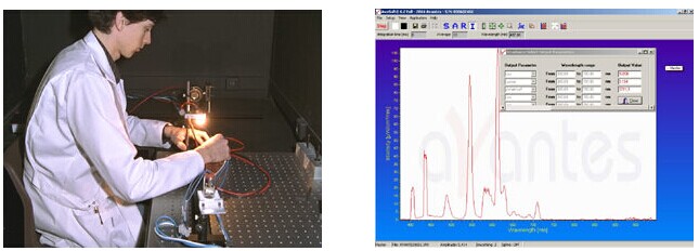 如果要進行絕對輻射測量(單位:μW/cm2.nm),可以選擇在Avantes公司的定標(biāo)實驗室里對光譜儀進行輻射定標(biāo):可以在波長范圍200-400nm或350-1100nm進行,也可以在200-1100nm進行,或者在1100-2500nm進行。標(biāo)定后整個光譜儀測量裝置就要保持固定,如光纖和余弦校正器等在實際測量時均不能改變。